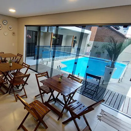 Espaço confortável de Florianópolis offre des chambres avec un balcon et un coin repas comprenant une climatisation, ainsi qu'une TV à écran plat avec des chaînes satellite. Les chambres sont équipées d'un réfrigérateur et de la vaisselle, d'une toilette séparée et une douche dans les salles de bain.